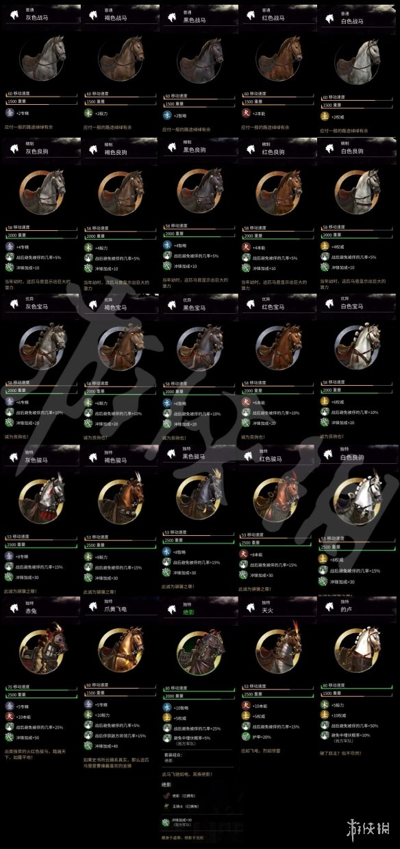全面战争三国马匹有哪些?想必很多朋友都还不是很清楚吧,所以呢小编今天给大家带来的就是全面战争三国全马匹属性介绍,需要的朋友还不快进来看看。