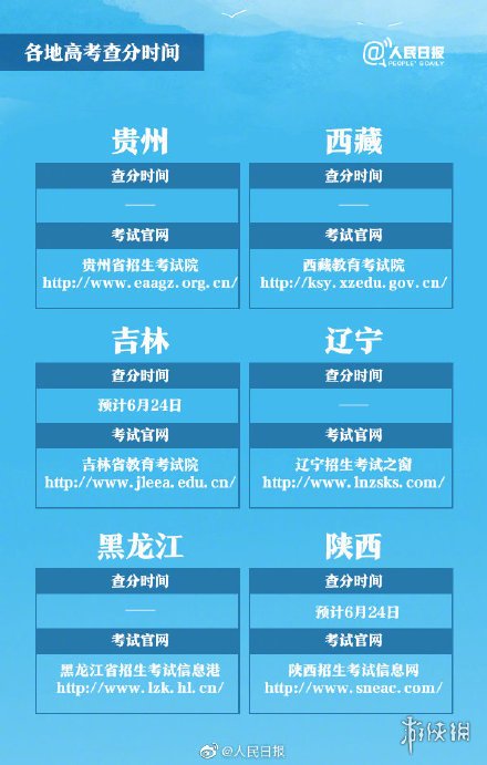 目前,北京、江苏、浙江、广东、安徽、河北、河南、湖北、湖南等10余个省份已经公布高考成绩查询时间。你的家乡何时公布?