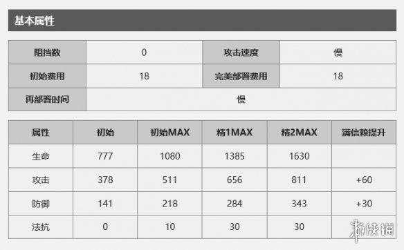 狮蝎的血量较低 和高台上的术士狙击差不多 ,但是由于本身0阻挡会被近战无视,同时拥有50双闪避与30魔抗,以及比远卫略低的防御(拉狗子365,银灰397),生存能力相当优秀。攻击间隔为全游戏最大,3.5s,开启2技能更是达到5.2s,导致狮蝎的dps数据并不好看 但是能同时攻击范围内所有敌人 。狮蝎的不易成为目标是指会成为敌人攻击范围内仇恨最低的干员,个人理解就是相当于最早放下的干员,只有敌人攻击范围内只有狮蝎时才会受到攻击。