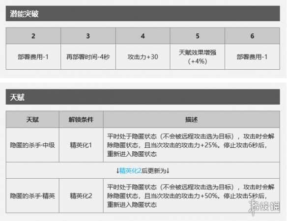 天赋本身攻击力加成只有开启2技能之后才能每一下平a都吃到,而2技能与天赋的攻击力增加为加算,所以潜能里面这个天赋提升较小。与敌方隐形类似,进入隐形之后会吃地板效果,但是不会被aoe给打到。