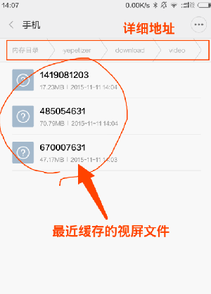 2.缓存成功后,切换到文件管理器,查找“开眼”app所在的目录文件夹