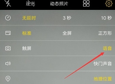 然后我们再次点击语音,会变成黄色,这时候我们就可以使用了,我们只需要说出拍照或者茄子就可以进行拍照了。