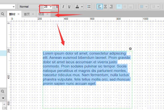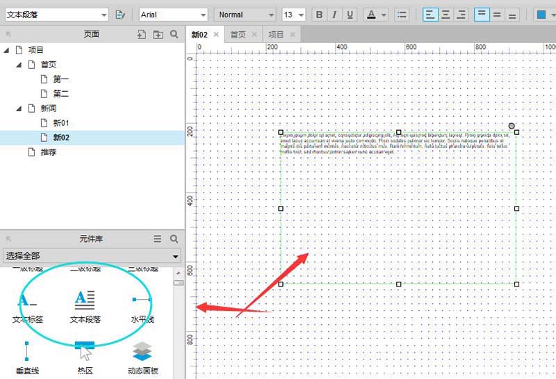 首先我们打开Axure软件,建立一个文本段落,刚建立的时候都是默认的排版布置