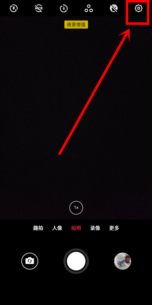 2.点击相机界面右上角的齿轮图标,进入相机设置菜单。