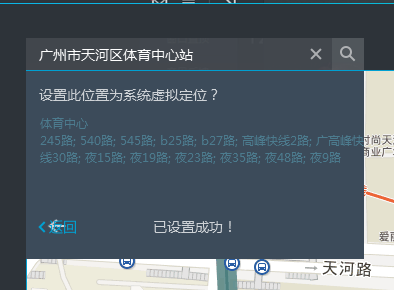 3、也可以直接在模拟器内使用鼠标滚轮放大缩小地图,鼠标左键点击地图位置即可选定位置,选择位置后点确定即可。