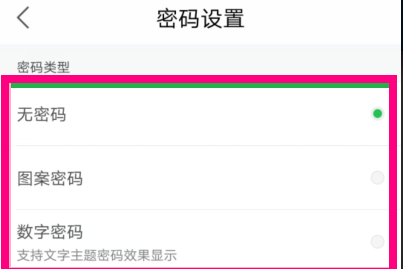 3、在呈现的白页中,有以下有两类可设的密码:图案密码、数字密码。