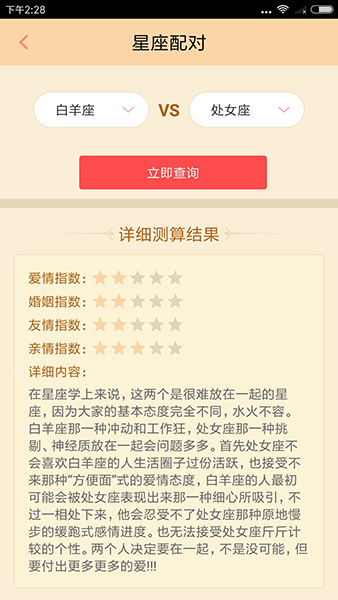 通过生肖来了解两个人的性格和命运,通过属性的对比可以更好的了解两人是否合适。
