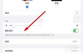 在“显示与亮度”页面中,找到“原彩显示”选项。默认情况下,该选项可能是关闭的。点击该选项旁边的开关按钮,将其打开。此时,您的iphone将开始自动调节屏幕颜色平衡。