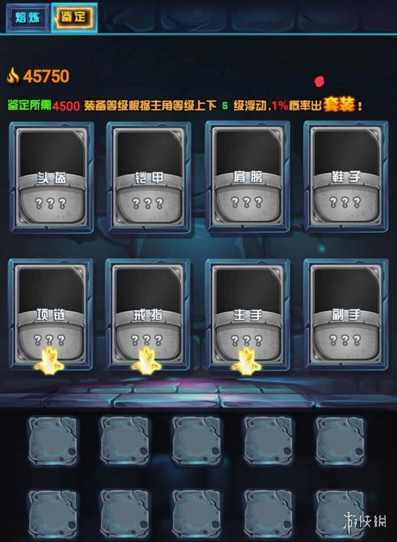 建议20级以后在去鉴定装备,这样出来的装备最低也是15级,够用好几天,鉴定里面带有金色标志说明有几率出套装。