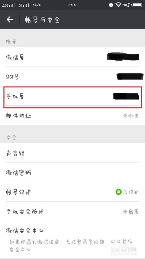 在“账号与安全”界面中,您会看到多个与账号安全相关的选项,其中“手机号”是本次操作的关键。点击“手机号”选项,进入手机号管理页面。