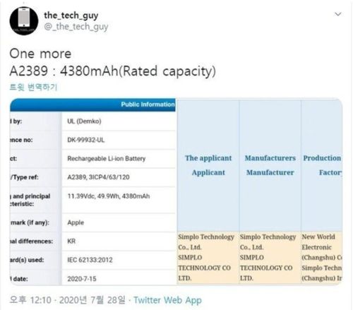 在当今这个科技飞速发展的时代,智能手机已成为我们日常生活中不可或缺的一部分。苹果公司的iphone系列手机,尤其是iphone 12,因其卓越的设计、强大的性能和先进的功能而受到广大消费者的青睐。然而,对于许多用户来说,电池续航能力是他们选购手机时非常关心的一个因素。那么,苹果12的电池容量究竟是多少呢?本文将为您详细解答。