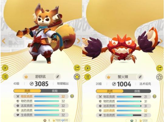 小狐狸和小呼噜,这两只价格一直居高不下,小狐狸是因为有非常强力的进阶,而且种族值不错;小呼噜则是因为进阶需要400符印,因此至少全30+资质才适合进阶。