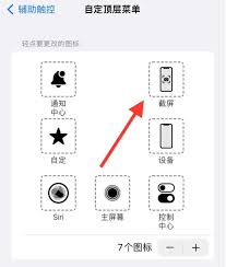 - 操作方法:进入“设置”>“辅助功能”>“触控”,然后开启“辅助触控”,在辅助触控中选择“自定顶部菜单”,添加“截屏”功能。之后,在屏幕顶部会出现一个小圆点,点击该小圆点并选择“截屏”即可完成截图。