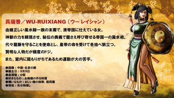 吴瑞香是游戏中为数不多的中国角色,下面就让我们通过这篇侍魂晓新角色吴瑞香介绍来好好的认识一下她吧。