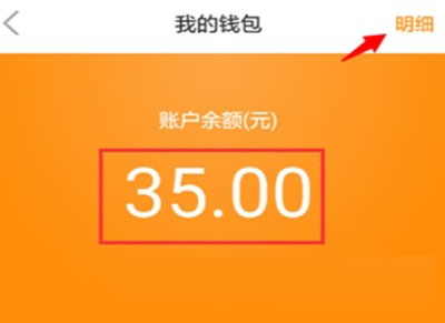 3. 进入“我的钱包”后,看到账号余额和即将到账的钱,即将到账的就是刚结束拼车,费用还没到账的那一部分。右上角“明细”,点击看到接单明细以及每单收到费用。