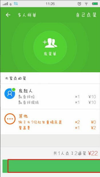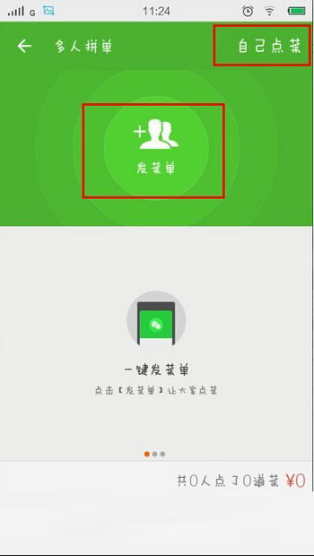3、我们可以先点击“自己点菜”,然后点击“发菜单”,