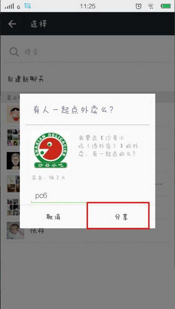 4、我们就可以看到你微信最近聊天的人,发一个菜单给你想要拼单的朋友,点击分享