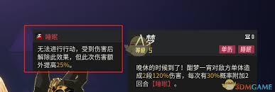 酣梦一宵是新增的sr角色,以其独特的群控和减攻能力受到玩家们的青睐。她能给敌方单位施加睡眠效果,当敌方单位解除睡眠后,伤害会额外提高,但她的被动技能和大招能有效控制敌方行动进度和降低攻击力,使得这一负面影响得以抵消。酣梦一宵的技能组需要组合使用,通过提升效果命中率来最大化其控制效果。