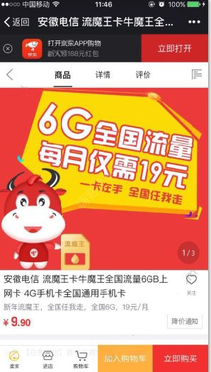 其实就是在京东app里可以购买,虽然是安徽电信的,但是大家也无需担心,安徽电信声称,该套餐支持全国发货,前两个月每月赠送20元话费,也就是说免费用12GB流量,每月流量超出后流量合计需要30元/GB。