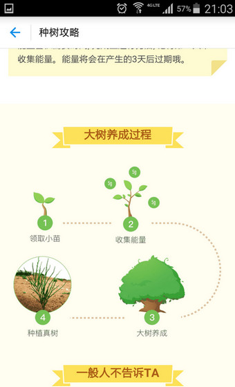也可以通过收取支付宝好友产生的能量来让你的小树苗长大了,如果你也感兴趣那我们就一起来行动起来吧。