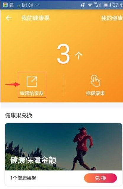 6.在我的健康果页面选择”兑换“;