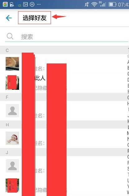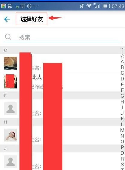 4.进入”选择好友“页面;