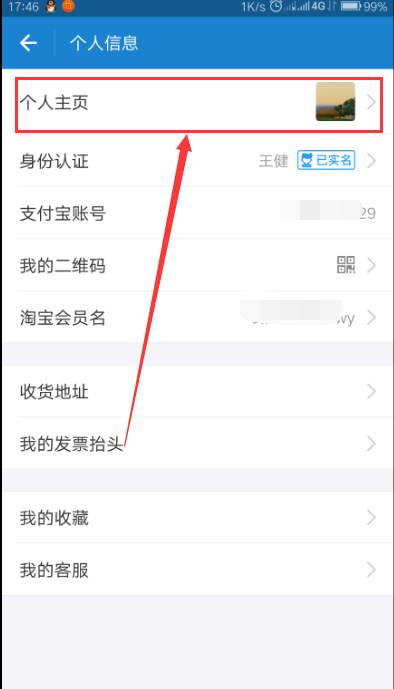 3、在“个人信息”页面点击“个人主页”。