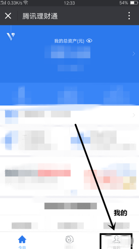 3、然后在腾讯理财通中,点击打开下方菜单“我的”,如图所示,
