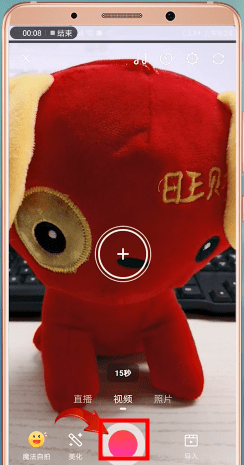 1、在开始的时候我们可以打开美拍软件,之后我们点击下方的拍摄按钮,拍摄一段视频。