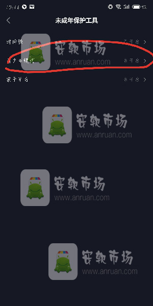 3、点击选择“青少年模式”。