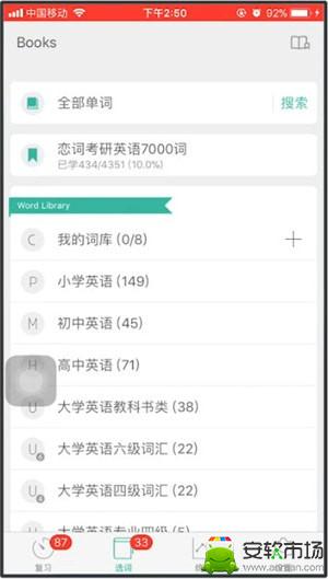 3、最后我们返回到选择单词的页面,这样我们就会发现自己的词汇书已经更换好了。