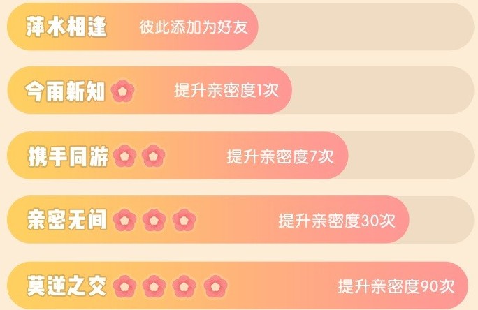 与好友进行下列任意一项活动,即可获得一个亲密点数。