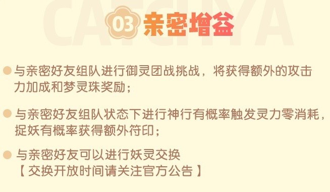3)与亲密好友可以进行妖灵交换,交换开放时间请关注官方公告。