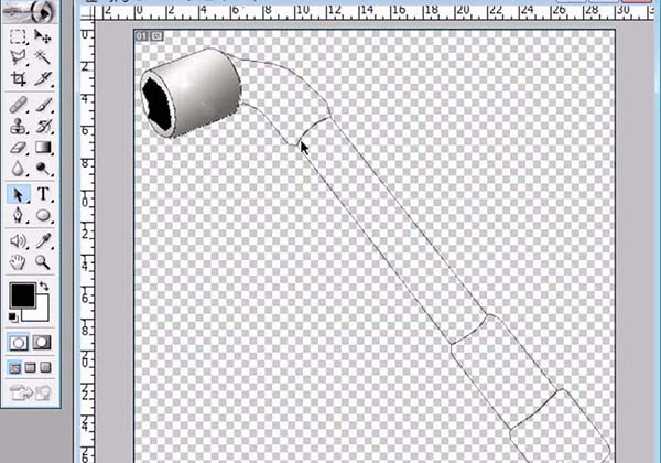 使用钢笔工具,绘制出套筒扳手的基本轮廓,分段式的结构从上到下依次绘制出来,注意边缘的圆滑拐角