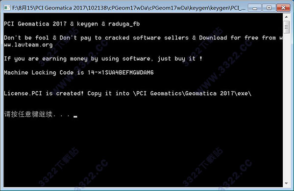 8、软件安装完成后回到数据包找到并双击PCI_Geomatica_2017_kg.exe,