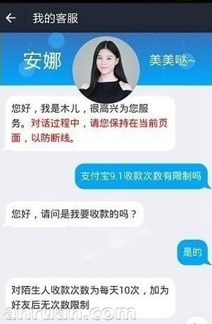 2、如果我们对陌生人收款的话,每天限制次数为10次,但是我们加为好友以后就可以不受限制,这是我们从官方客服获得的消息。可以看出来支付宝现在很重视支付宝的通讯渠道。