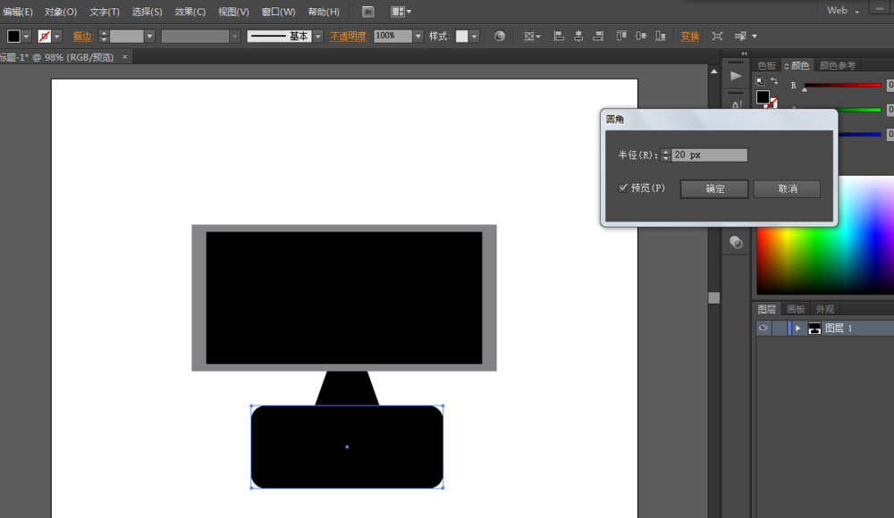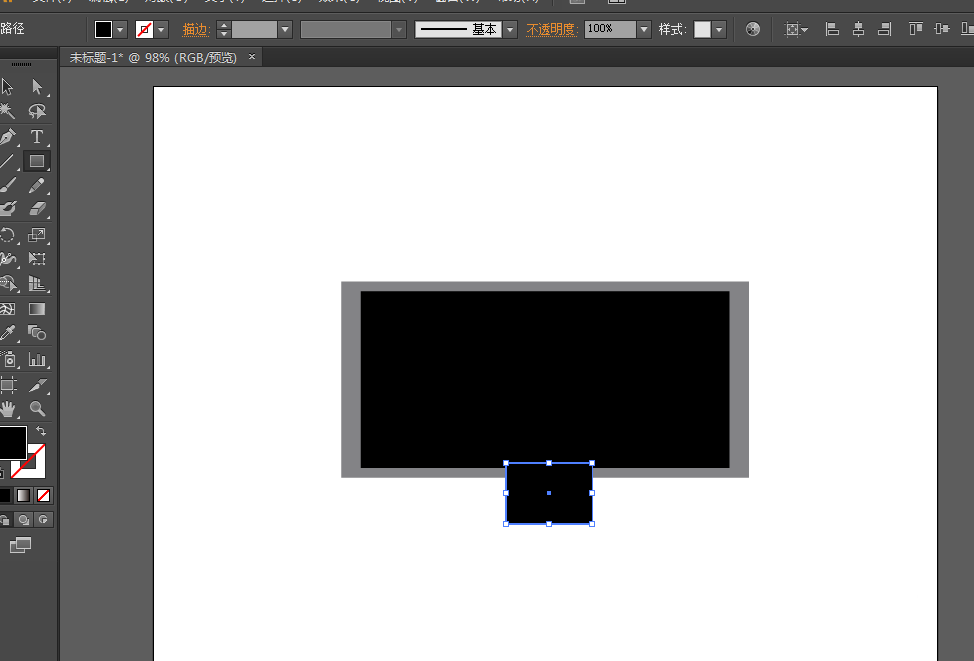 画一个小一点的黑色的长方形,矩形工具绘制一个小的长方形作为底座,直接选择工具改变大小。