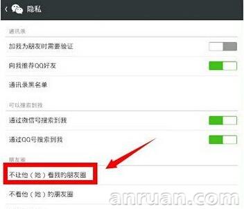 2、进入隐私选项以后,就可以看到【不让它看我的朋友圈】