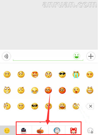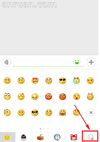 2、然后,点击表情界面最右下方的“+”,如图,不要点到其他的符号了哦!