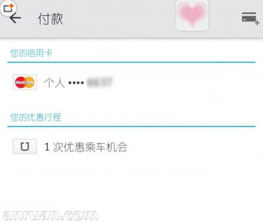 自己的优惠乘车机会可以在优步界面—“付款”—“您的优惠行程”中看到“一次优惠乘车机会”。