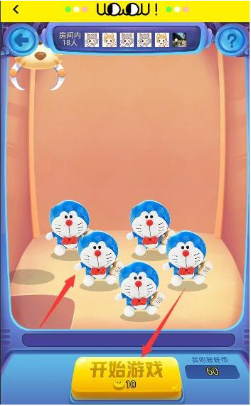 3、最后需要花费10娃娃币进行抢夺游戏机的娃娃,在上方可以看到房间内抢夺娃娃的人数哦;