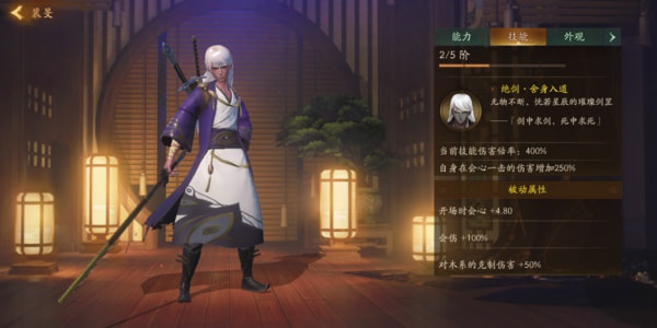 3、大家都知道,裴旻的会伤非常可怕,所以拥有成吨的输出,裴旻第二个被动属性,升满可以为其额外带来100%的会伤。