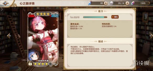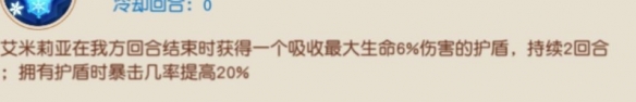 艾米莉亚作为前期推图的主力,必须优先升起来,所以是血量最高的,魔焰匕首的集成效果是每波战斗前给全队加自身血量15的护盾,再加上艾米莉亚的被动。
