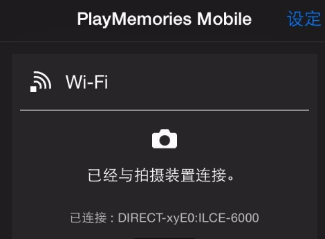 7、然后就需要手机连接相机,打开【PlayMemories Home】软件,可以看到已经与拍摄装置连接。
