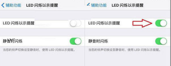 3、最后我们把【LED闪烁以示提醒】点击切换就可以了。