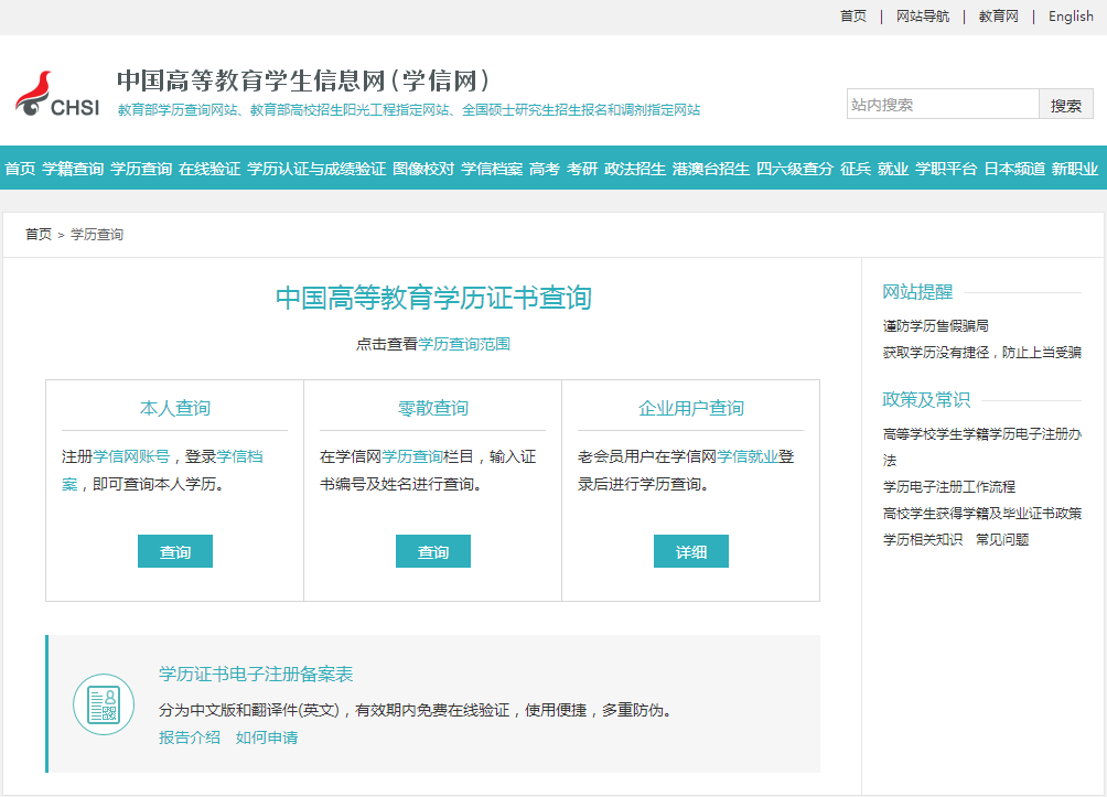 网上查自己的学历