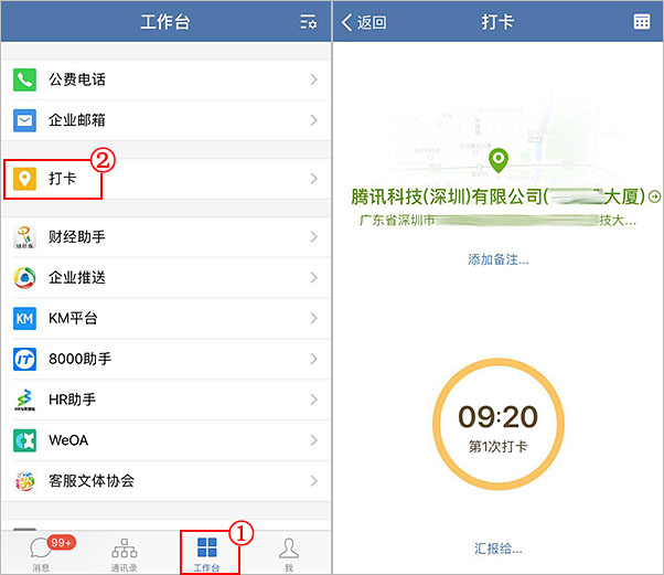 第三种是考勤机打卡,需要对接到腾讯企业微信专用的考勤机,打卡数据和企业微信同步。