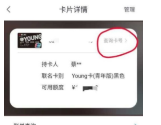 4.点击卡片管理之后就可以看到卡片详情页,点击右上方的查询卡号。