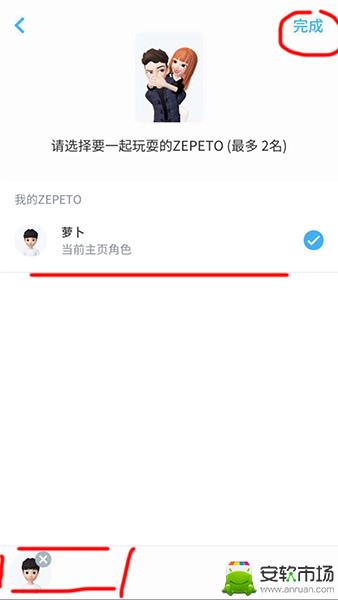 2、选择要合拍的角色,这里因为小编只有一个,大家可以拥有多个之后,在选择然后点击完成;