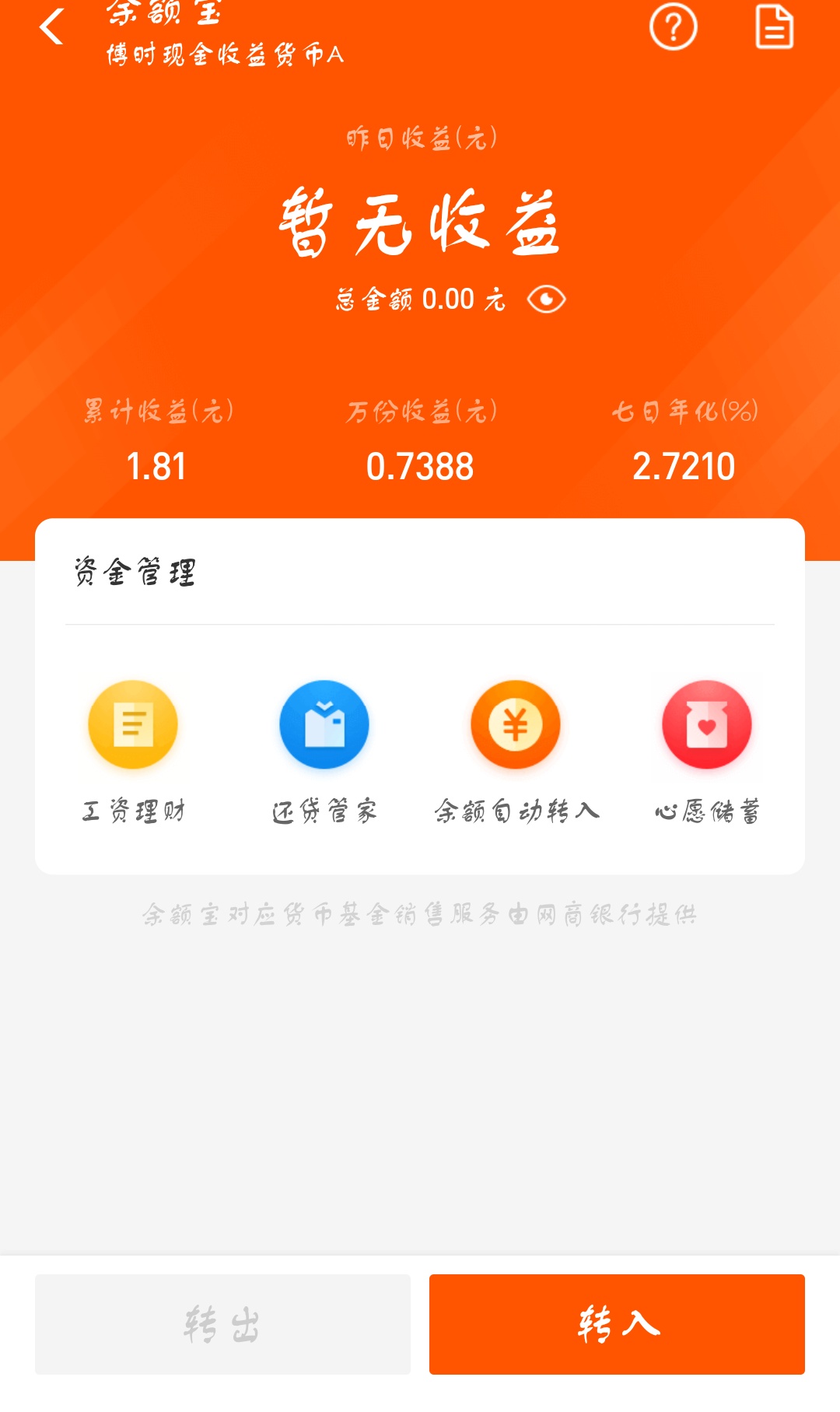 2、用余利宝提现,通过余利宝提现也是免费手续费,可以把余额宝中的钱转入到支付宝余额中,再从余额中转入到余利宝中,余利宝和余额宝一样,钱放在里面,每天都有收益。